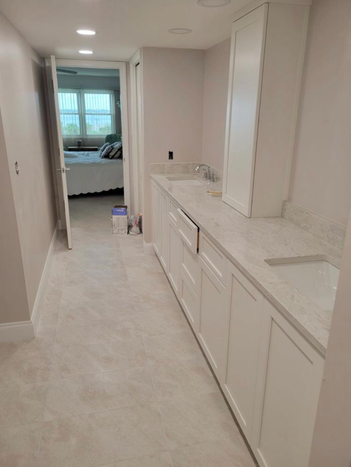 Our team modernized this vanity space with fresh interior paint and professionally refinished cabinetry. The updated tones brighten the room, while the clean finishes deliver a polished, high-end appearance.